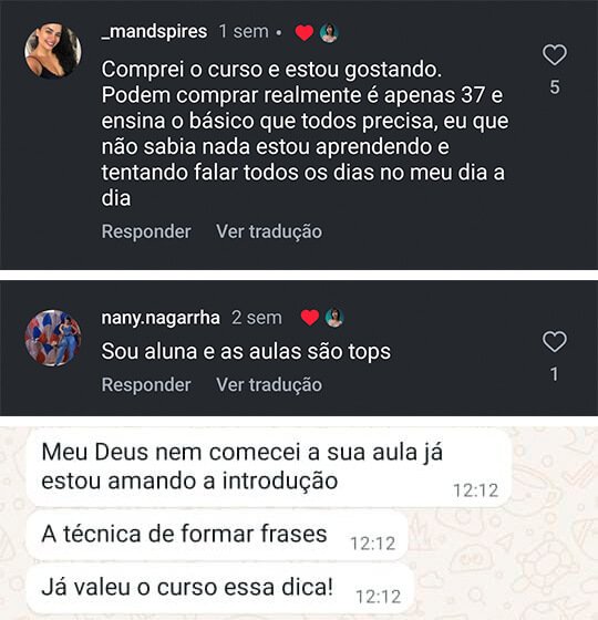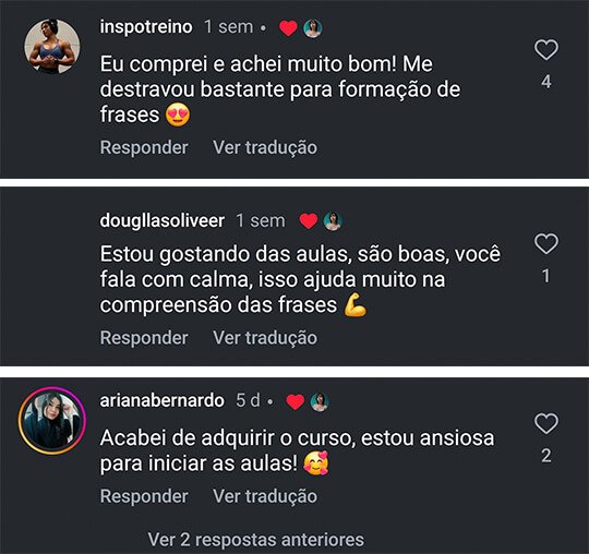 Embora seja um curso focado na fala, bem direto ao ponto, você precisará assistir as aulas e realizar as tarefas propostas.
