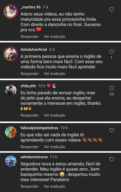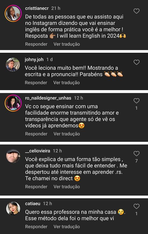Joanna Acumula milhões de visualizações em seus vídeos no Instagram, onde ajuda seus seguidores todos os dias a destravar no Inglês com lições simples e diretas ao ponto.