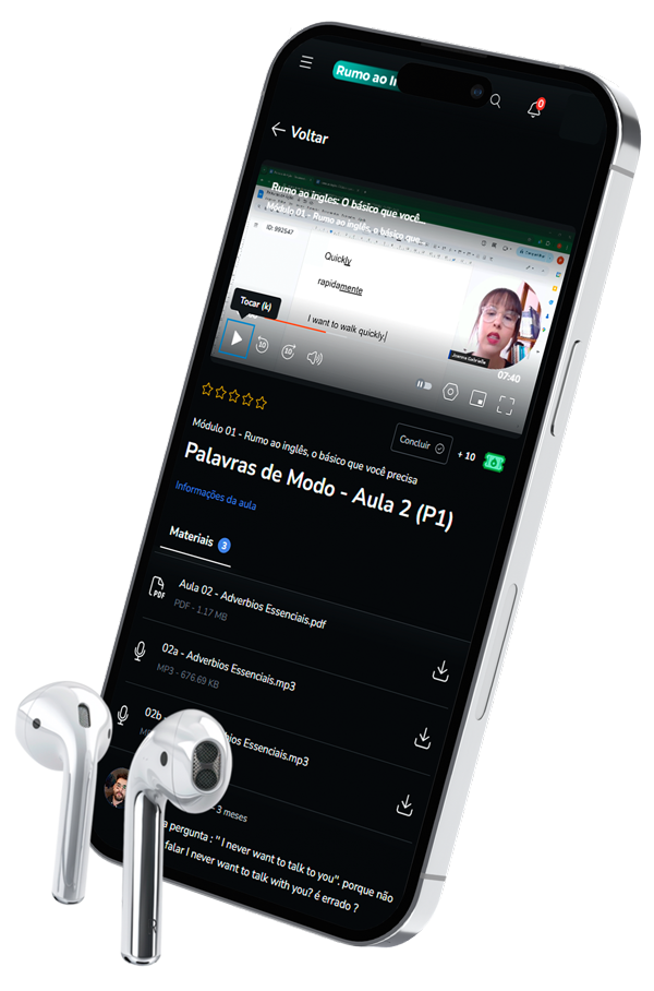 Com vídeo aulas rápidas e objetivas, áudios, PDFs e Intensivos Ao Vivo com a teacher Joanna, o aprendizado flui, no seu tempo e no seu ritmo.